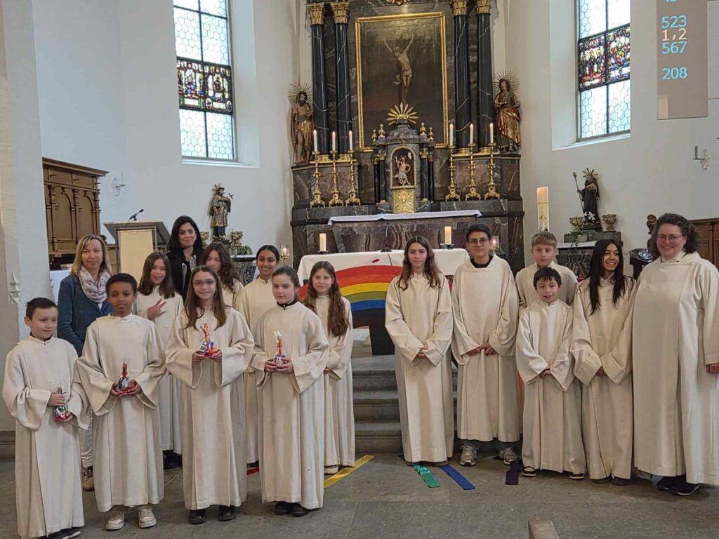 Bei strahlendem Wetter waren Bischof Felix mit Bischofsvikar Christoph Sterkmann, Pfarrer Walter Schärli, Diakon Hans Zürcher und der kirchlichen Jugendarbeiterin Alexandra Atapattu und allen fünf Katechetinnen um 10 Uhr in die volle Stadtpfarrkirche von Mellingen eingezogen.