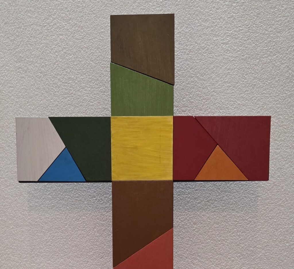 Abgegrenzt und doch nach aussen hin offen. Ein schützender Raum und doch in die Höhe weisend, zur Tiefe führend und in die Weite verbindend, das ist die Bewegung, welche die drei farbigen Schweife auslösen. Das Zentrum markiert im gelben Kreis das Suchen nach der eigentlichen Mitte, nach Gott. Und flankiert wird es an den Rändern vom Rot der Liebe, vom Grün der Hoffnung und vom Blau der Treue und des Glaubens. Die Liebe drängt nach oben, zum Himmel hin, als ob in der Liebe die Krönung all dessen liegt, was der Mensch auf Erden sucht. Die Hoffnung lässt sich erden, als ob jede Vision und jeder Traum auf festem Boden abgestützt sein muss. Die Treue und der Glaube lenken in die Weite und Unendlichkeit, als ob Engstirnigkeit niemals das Merkmal von Christen sein kann. Und alle drei Schweife öffnen sich nach aussen und nicht nach innen. Selbstbespiegelung steht der Kirche schlecht an. Der Dienst an den Menschen ist gefragt und nicht die Stärkung der Machtstrukturen.