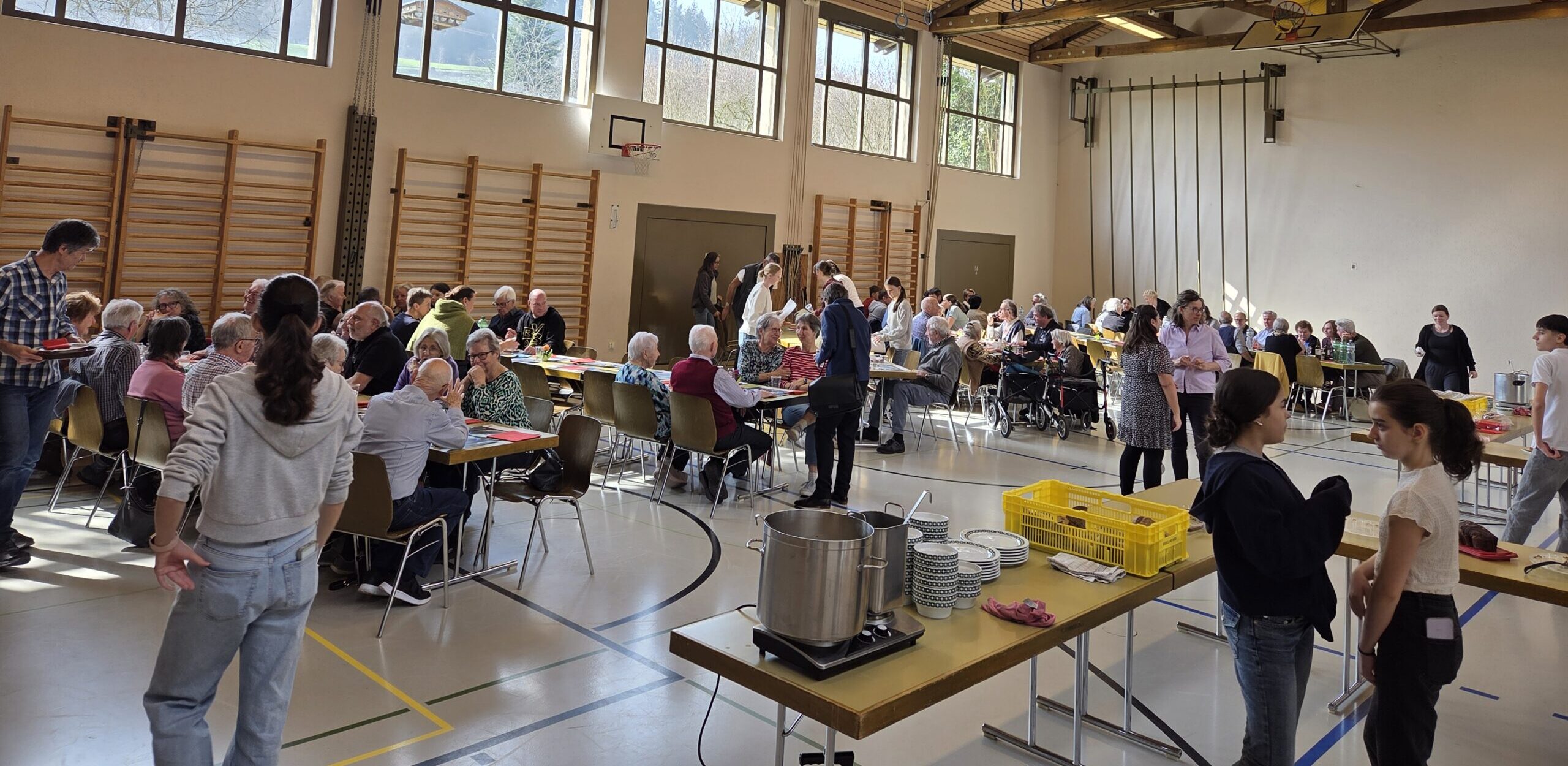 Im Anschluss trafen sich die Gottesdienstbesucher in der Mehrzweckhalle zu einem gemütlichen Beisammensein. Dort servierten Helfer und Jugendliche Oski’s feine Gerstensuppe sowie ein reichhaltiges Kuchenbuffet. Ein grosser Dank gilt allen, die gekocht, gebacken, serviert und organisiert haben, sowie allen, die durch ihr Kommen das Projekt unterstützt haben.